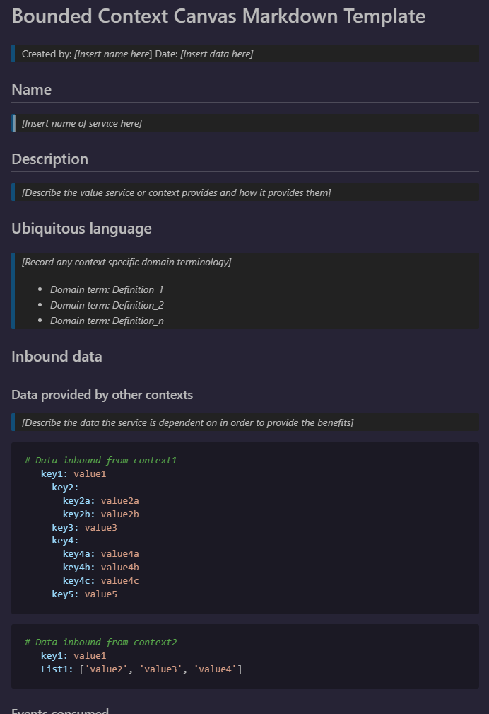 The organisation used Notion for document management so Tomek and I created a bounded context canvas for a service, on a call with the engineers who ran the service to try and extract the details. We used the ddd-crew’s Bounded Context Canvas for inspiration.